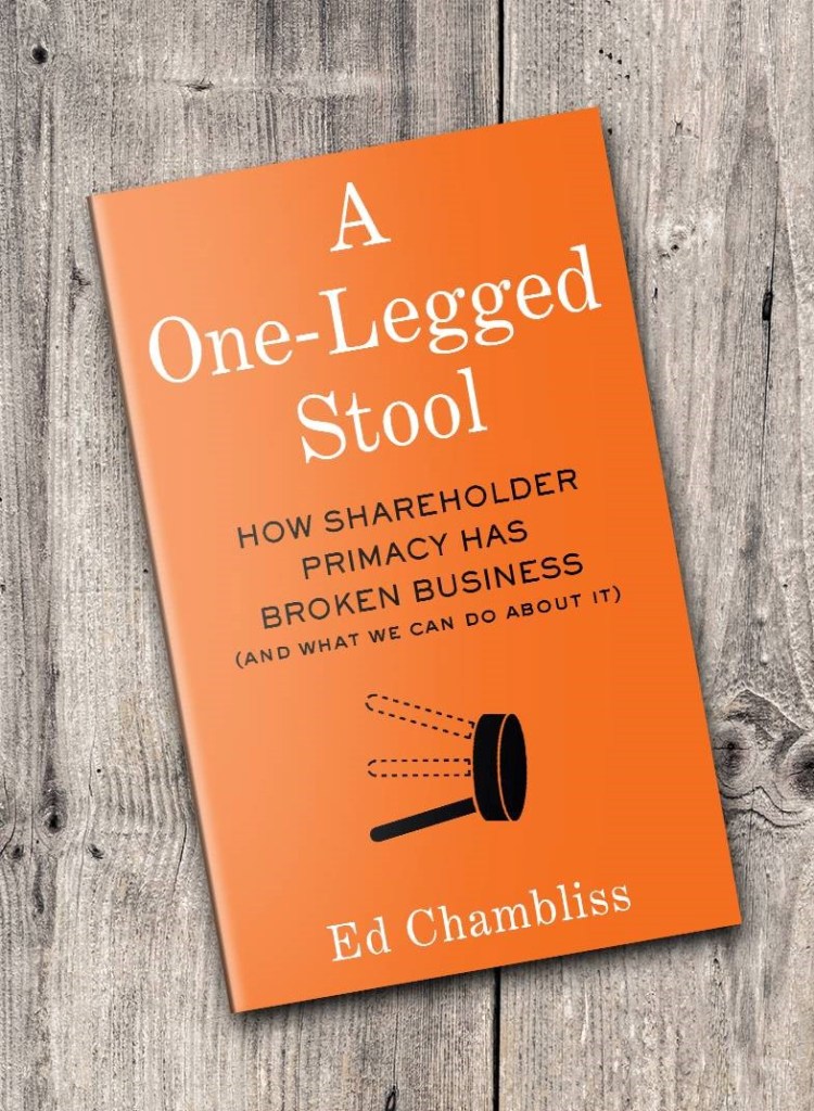In A One-Legged Stool, Ed Chambliss questions the commonly accepted belief that putting shareholders first is the best way to run a business. Through an entertaining and educational narrative, he shows that just the opposite is true: that “shareholder primacy” silently creates an undercurrent that constantly pulls business toward inequality and environmental disaster, damaging those it is supposed to serve. It’s a force so strong, we’ll never overcome the significant challenges we all face until we change this fundamental belief. Fortunately, he also shares specifics on how each of us can start making this change.