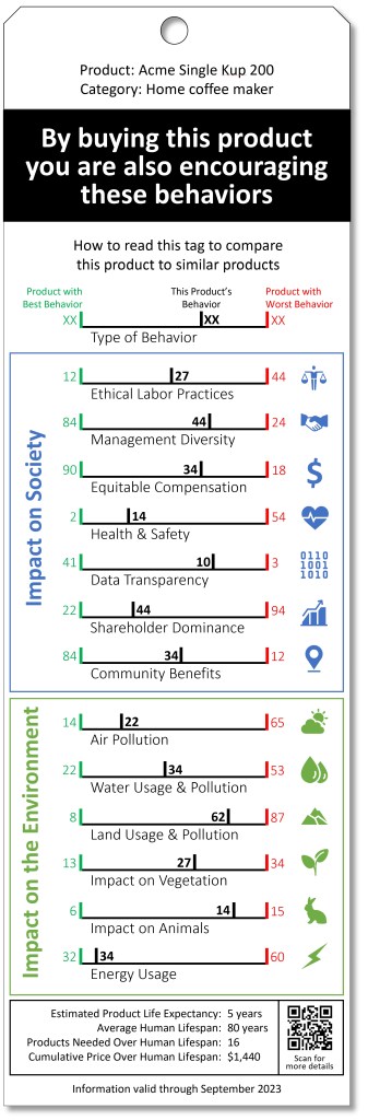 If consequential costs tags were a reality, clicking on the included QR code would take you to a website that provides more detailed information about each of the 13 consequential costs listed on the tag.